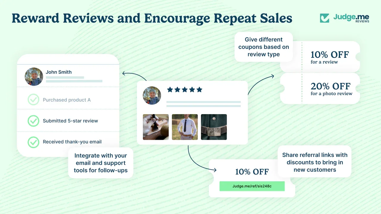 Photo reviews are particularly powerful. When customers see real people using your products, conversion rates jump by 30-50%. Judge.me makes collecting photo reviews simple with one-click uploads.